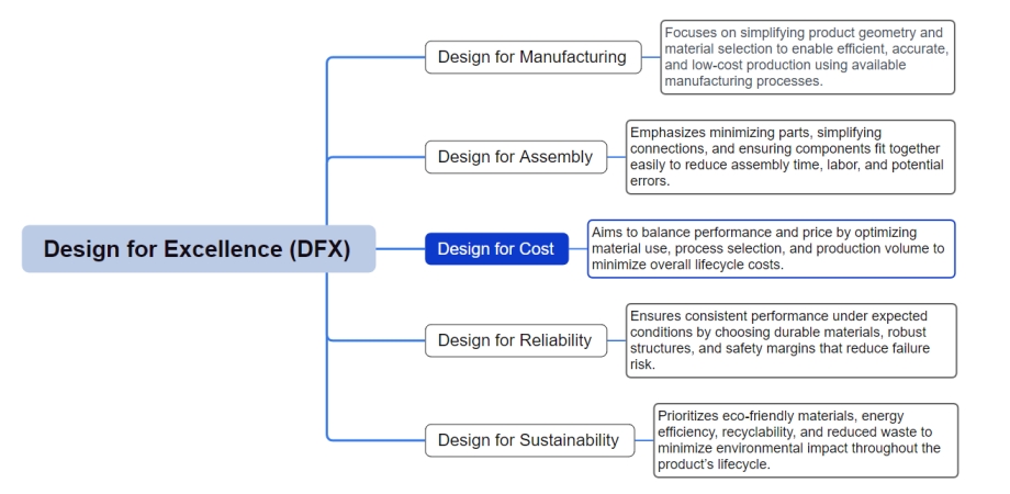 Design for cost is a fundamental principle that helps create cost models through design decisions. While it offers cost savings benefits in the early stages of design, it provides cost estimations with relatively limited details. However, as DFC and its other branches of Design for Excellence become more prevalent, engineering experts rely on future research for further information to increase system performance and minimize costs.