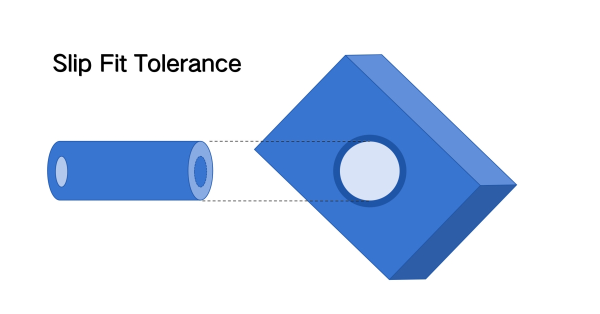 Slip fit tolerances indicate a minimal tolerance in clearance between the hole and its matching part, which can be within the shaft or pin. In application, the clearance needs to be enough to allow for ease of assembly while keeping the parts aligned. It’s relevant to use tolerances because designers are managing the dimensions of both the hole and its matching part at the same time.